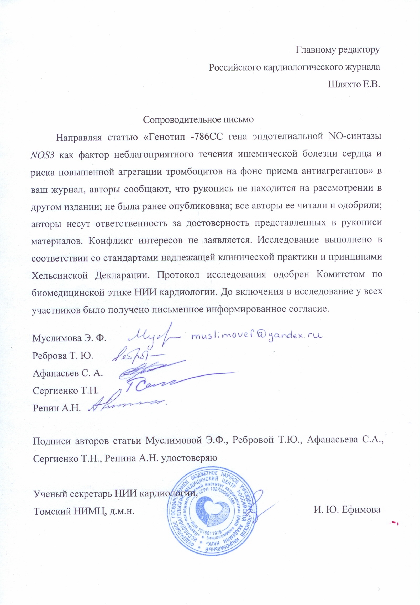 Муслимова Э.Ф., Реброва Т.Ю., Афанасьев С.А., Сергиенко Т.Н., Алексей А.Н. ГЕНОТИП -786CC ГЕНА ЭНДОТЕЛИАЛЬНОЙ NO-СИНТАЗЫ NOS3 КАК ФАКТОР НЕБЛАГОПРИЯТНОГО ТЕЧЕНИЯ ИШЕМИЧЕСКОЙ БОЛЕЗНИ СЕРДЦА И РИСКА ПОВЫШЕННОЙ АГРЕГАЦИИ ТРОМБОЦИТОВ НА ФОНЕ ПРИЕМА АНТИАГРЕГАНТОВ. Российский кардиологический журнал. 2017;(10):29-32. https://doi.org/10.15829/1560-4071-2017-10-29-32