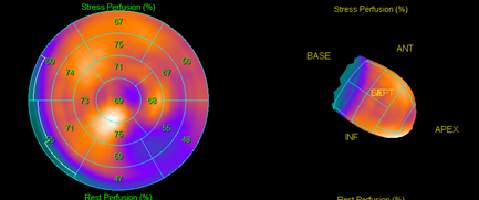 Заключение: Хроническая окклюзия коронарной артерии со слабым коллатеральным кровоснабжением сопровождается худшими показателями локальных перфузии и функции миокарда. При хорошем развитии коллатералей, несмотря на незначимые нарушения перфузии миокарда в покое, имеются отчетливые стресс-дефекты перфузии и нарушения локальной сократимости миокарда.