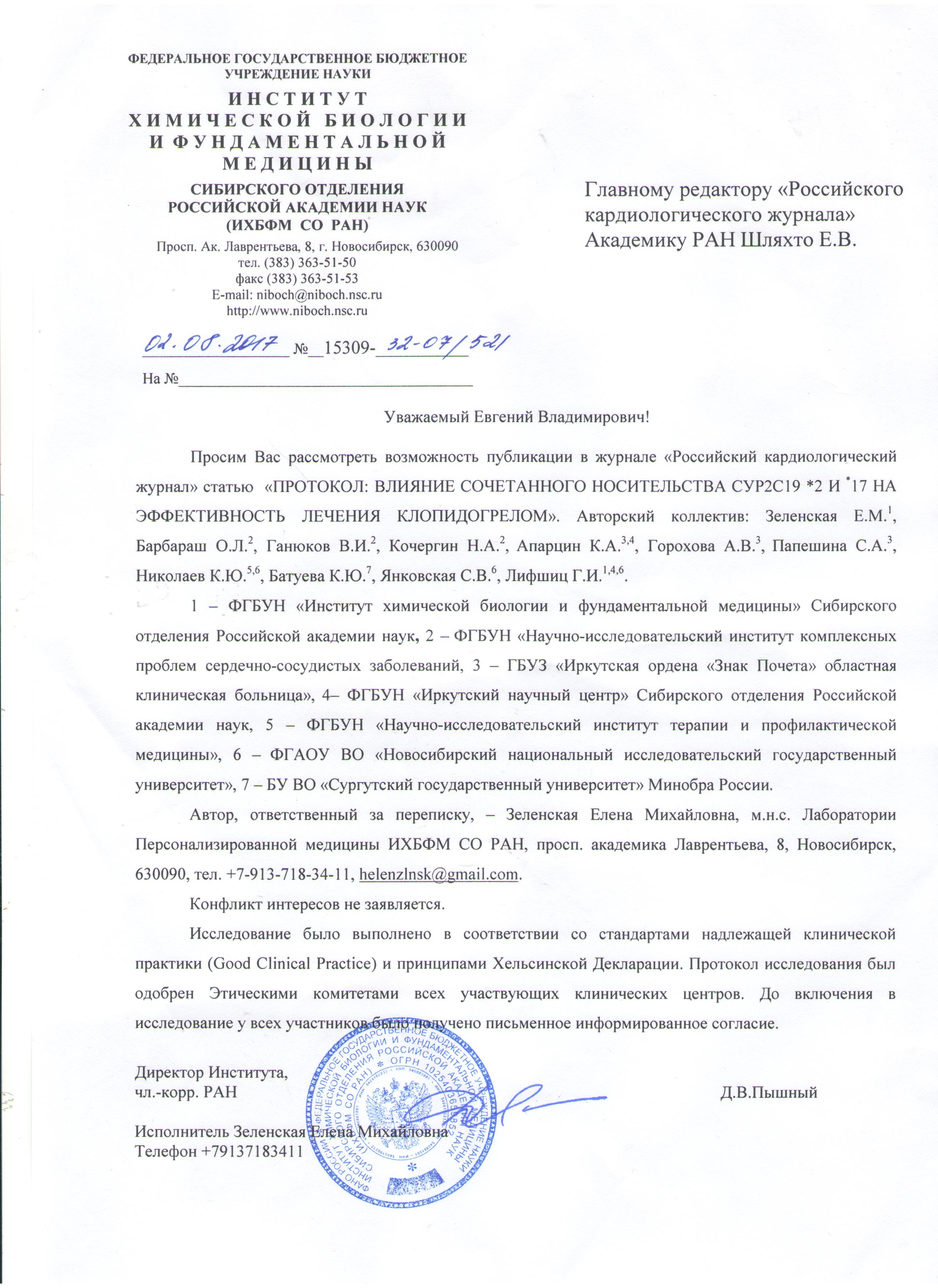 Zelenskaya Е.М., Barbarash О.L., Ganyukov V.I., Kochergin N.A., Apartsin К.A., Gorokhova А.V., Papeshina S.А., Nikolaev К.Yu., Batueva К.Yu., Yankovskaya S.V., Tronin А.V., Lifshits G.I. THE PROTOCOL: INFLUENCE OF THE COMBINATION CARRIAGE СУР2С19*2 AND *17 ON EFFICACY OF CLOPIDOGREL. Russian Journal of Cardiology. 2017;(10):113-117. (In Russ.) https://doi.org/10.15829/1560-4071-2017-10-113-117