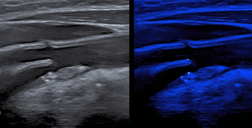 Рис. 3. Ультразвуковое изображение АСБ с единичным МК в покрышке в режиме MicroPure.