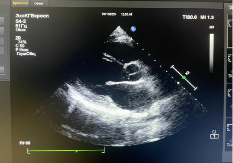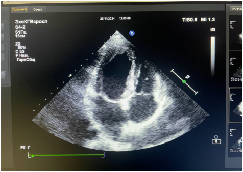 Рис. 3. Фото трансторакальной ЭхоКГ от 25.11.2024. Апикальная позиция.