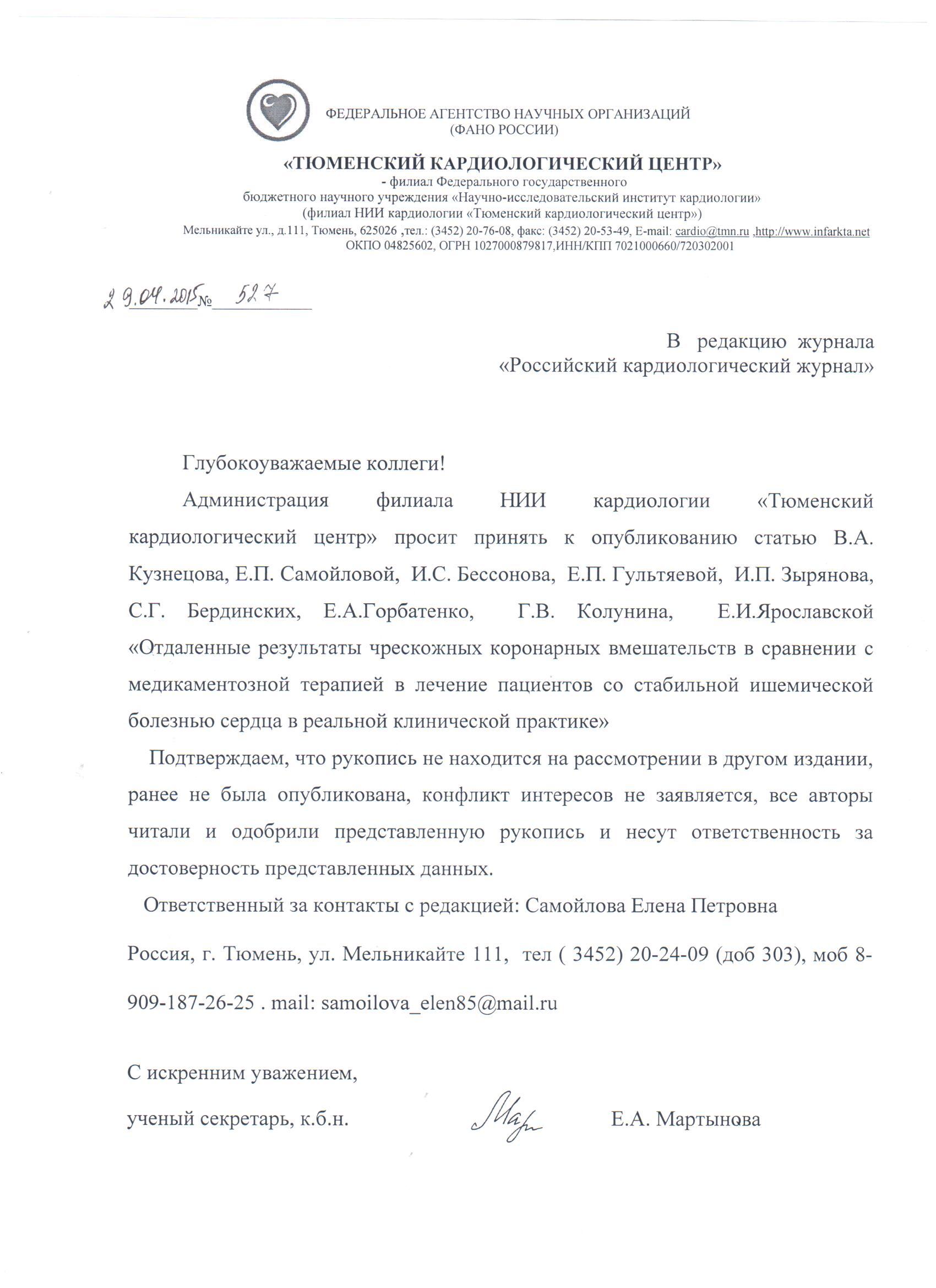 7. Kuznetsov VA, Zyryanov IP, Kolunin GV, et al. “Register of coronary angiography.” Certificate of state registration database number 2010620075, registered in the Registry Database February 1, 2010. Russian (Кузнецов В.А, Зырянов И.П., Колунин Г.В., и др. “Регистр проведенных операций коронарной ангиографии”. Свидетельство о государственной регистрации базы данных № 2010620075, зарегистрировано в Реестре базы данных 1 февраля 2010 г).